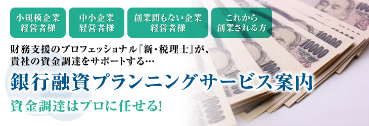 当事務所の銀行融資プランナー『新・税理士』が、貴社の財務部長的な役割を担います!