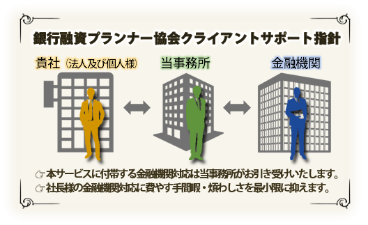 ※銀行融資プランナー協会の正会員である当事務所は、クライアントに『お金の心配をできるだけしない経営を行ってもらう』ための新しい機能を持つことを宣言いたします。